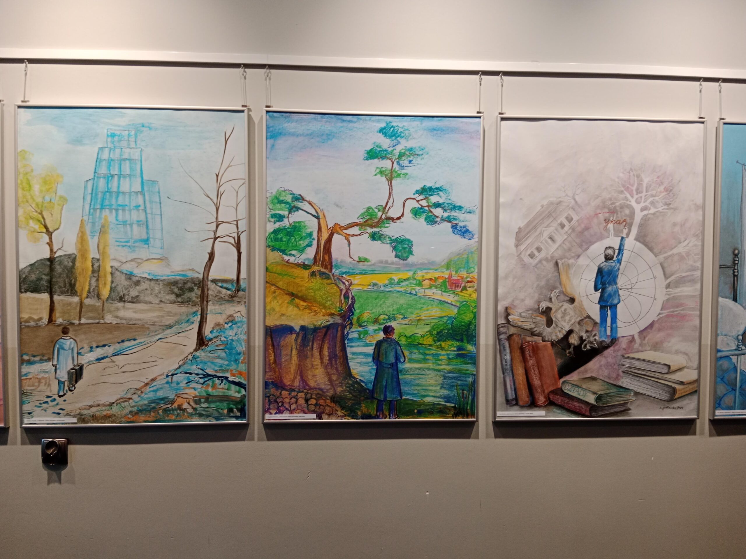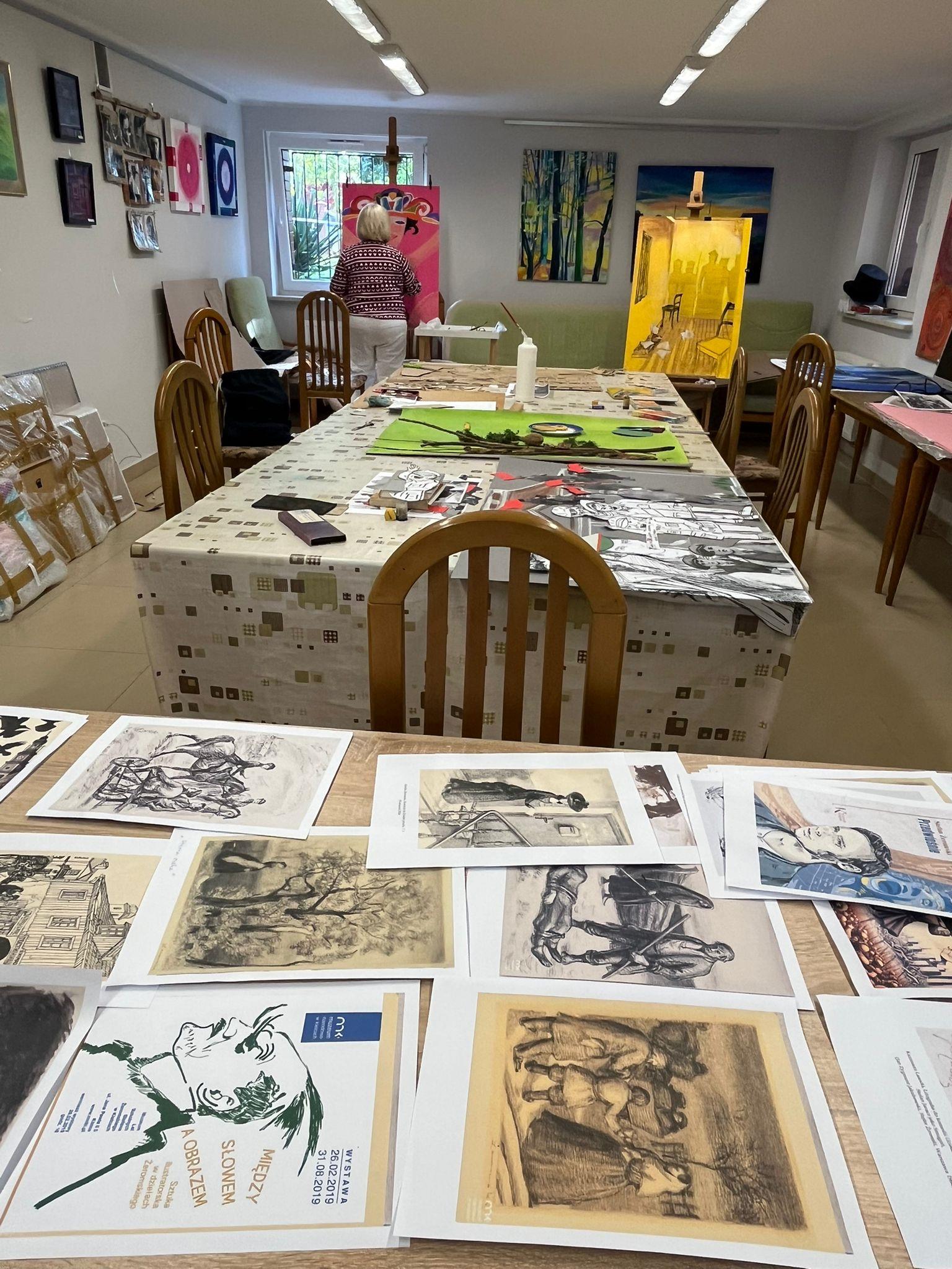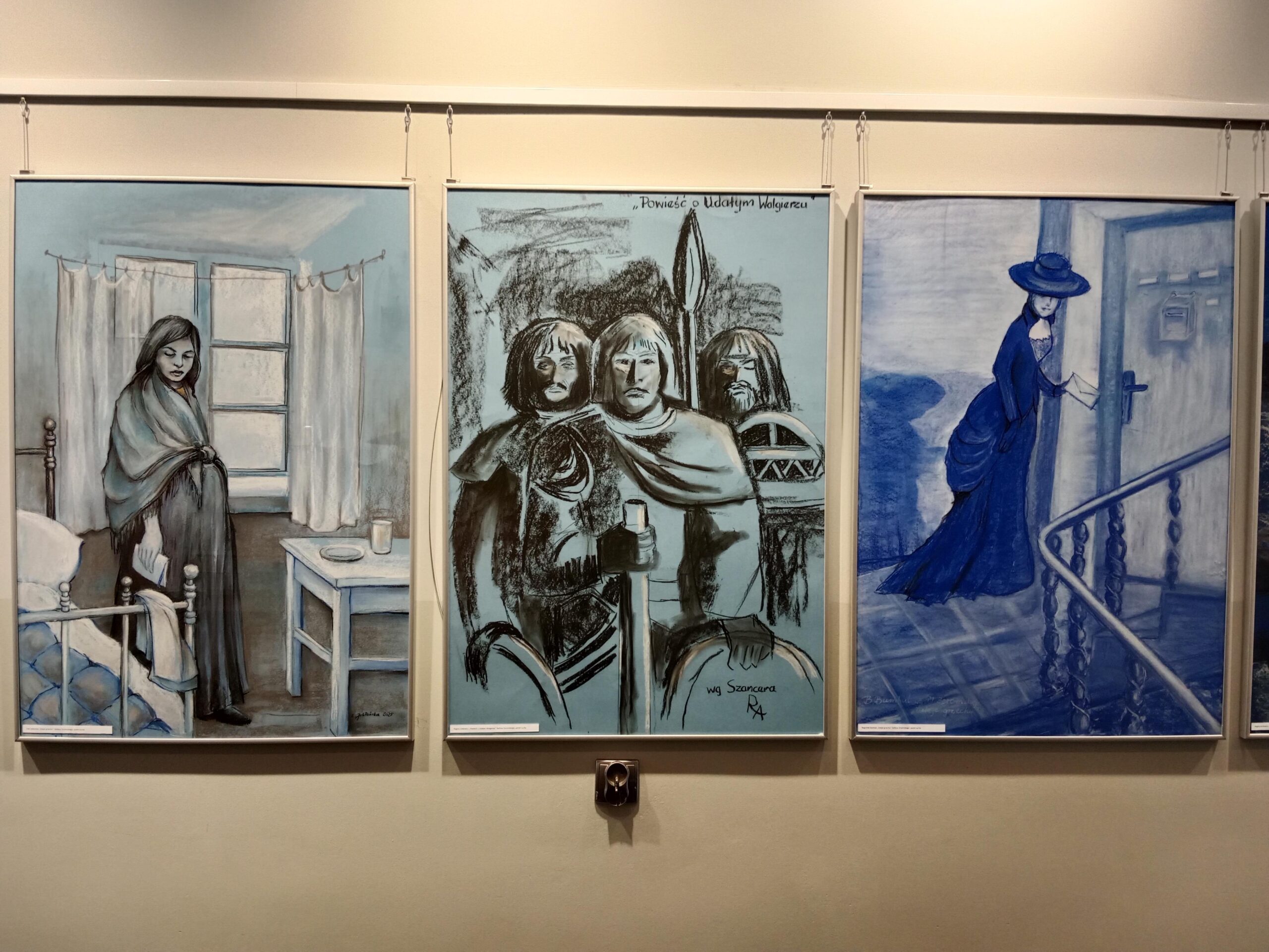 Biblioteka Publiczna i Centrum Kultury im. K. Iłłakowiczówny w Trzciance zaprosiły nas do organizowanego przez tę instytucję z okazji 100. rocznicy śmierci S. Żeromskiego i Nocy Bibliotek wydarzenia pn. „Żeromski i przyjaciele w przestrzeni miasta”. Efektem wzięcia udziału w tym trzcianeckim programie było wykonanie 20 obrazów w formacie 100 x 70 tematycznie związanych z twórczością pisarza. Obrazy te, wykonane różną techniką , umieszczone zostały w holu biblioteki , który na tę okazję zamienił się w przestrzeń wystawienniczą dla naszych prac oraz dla fotografii UTW w Trzciance. Malowanie tych obrazów dało nam możliwość do kolejnego spotkania z twórczością pisarza nazwanego „sumieniem narodu „. Podczas pobytu w Trzciance na Nocy Bibliotek mieliśmy okazję skorzystać z różnych niespodzianek przygotowanych na tę okoliczność w tym za pomocą specjalnych gogli, które przeniosły nas do świata sennych koszmarów i apokaliptycznych wizji słynnego malarza –Zdzisława Beksińskiego.
