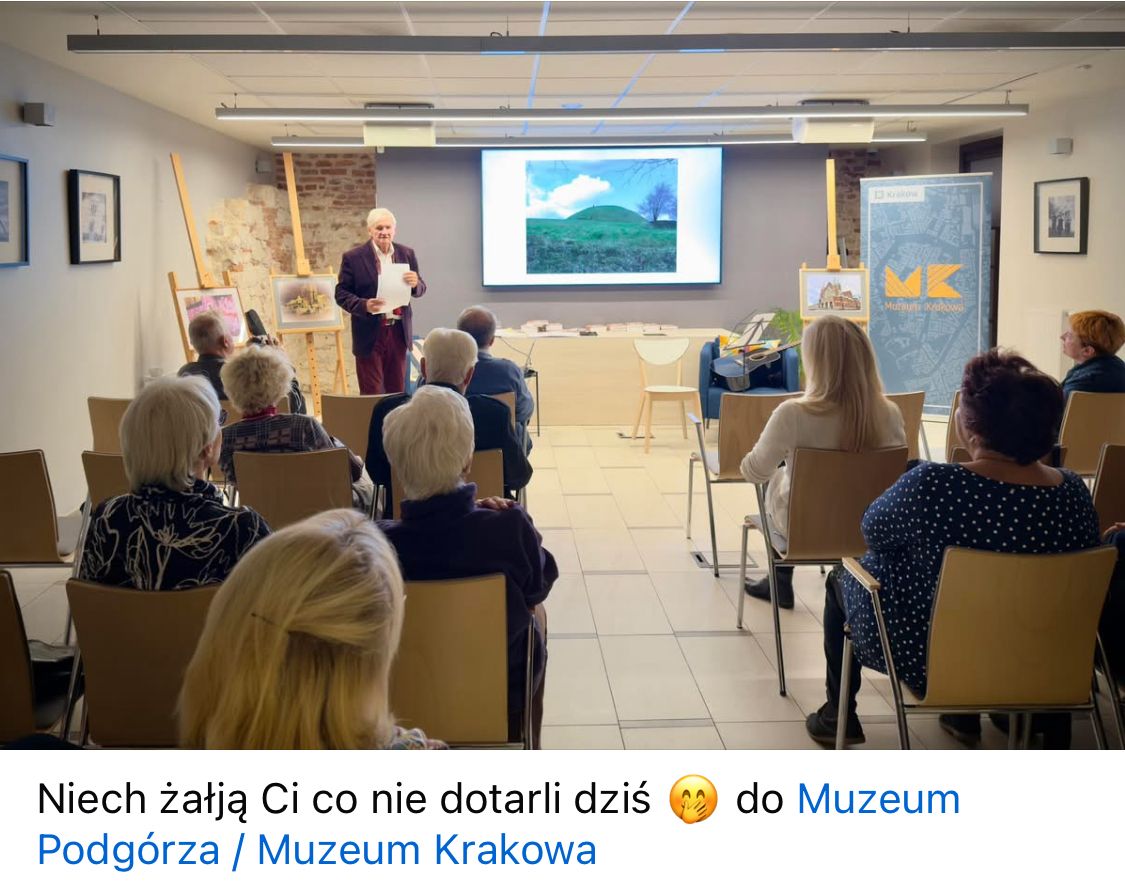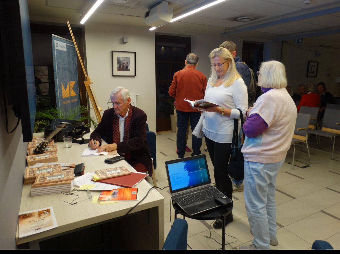 Tego dnia nasz kolega Grzegorz Koźmiński o godzinie 17:00 na zaproszenie Muzeum Podgórza w Krakowie miał swój wieczór autorski pt. „Otwieram drzwi na oścież”. Tym tomikiem wierszy zaciekawił i zachwycił przybyłych na spotkanie gości, a przy okazji rozsławił nasze Stowarzyszenie Lekarzy i Nauczycieli Twórczych JELO w Pile mówiąc o projekcie, który wspólnie napisaliśmy dla Miasta Piły. Ilustratorką wierszy jest nasza koleżanka Ewa Jabłońska, zaś projektem okładki zajęła się Bogusława Różańska. Grzegorz nie tylko dał się poznać jako niezwykle wrażliwy poeta, ale świetny i utalentowany mówca, gdzie wspomnienia i opowieści sięgały do roku 1914. Dla Grzegorza wieczór autorski w mieście swojej matki był wielkim wzbudzającym emocje wydarzeniem, a jego narracja i wyśpiewane historie znane i nieznane przy akompaniamencie gitary wzruszyły do łez nie tylko panią kustosz muzeum ale i całą publiczność.