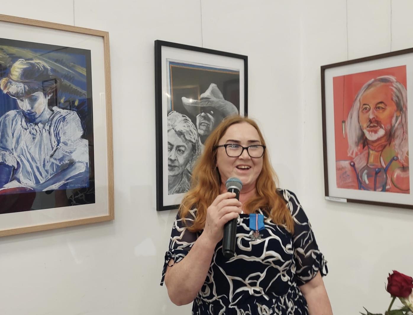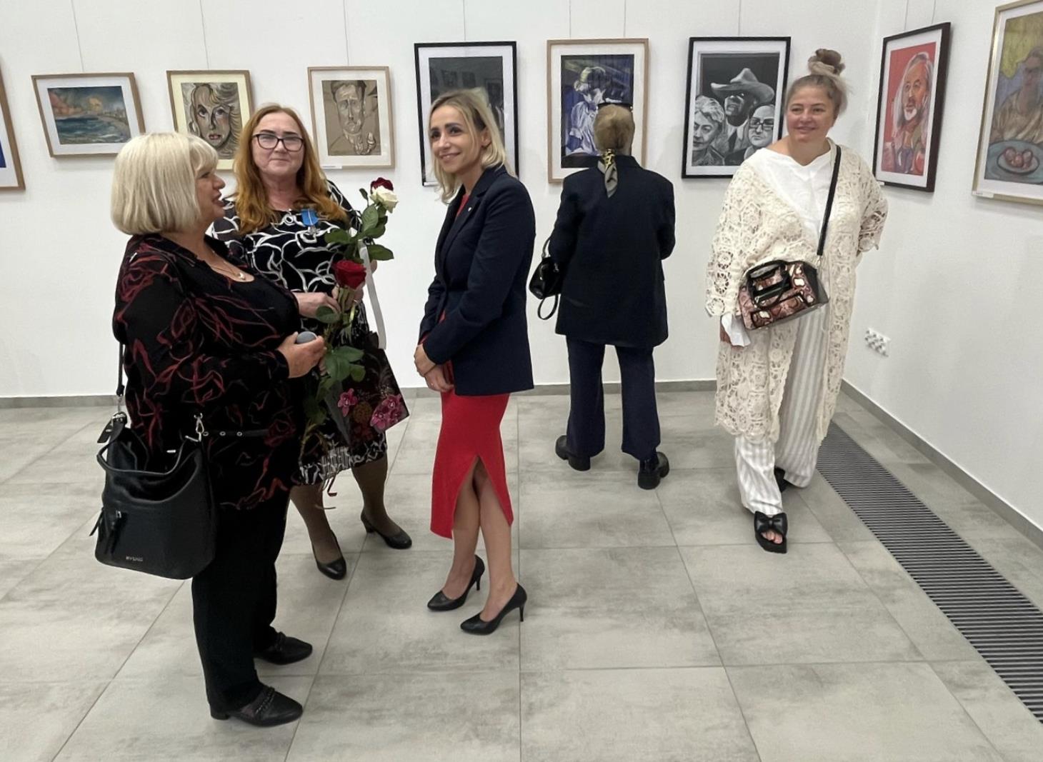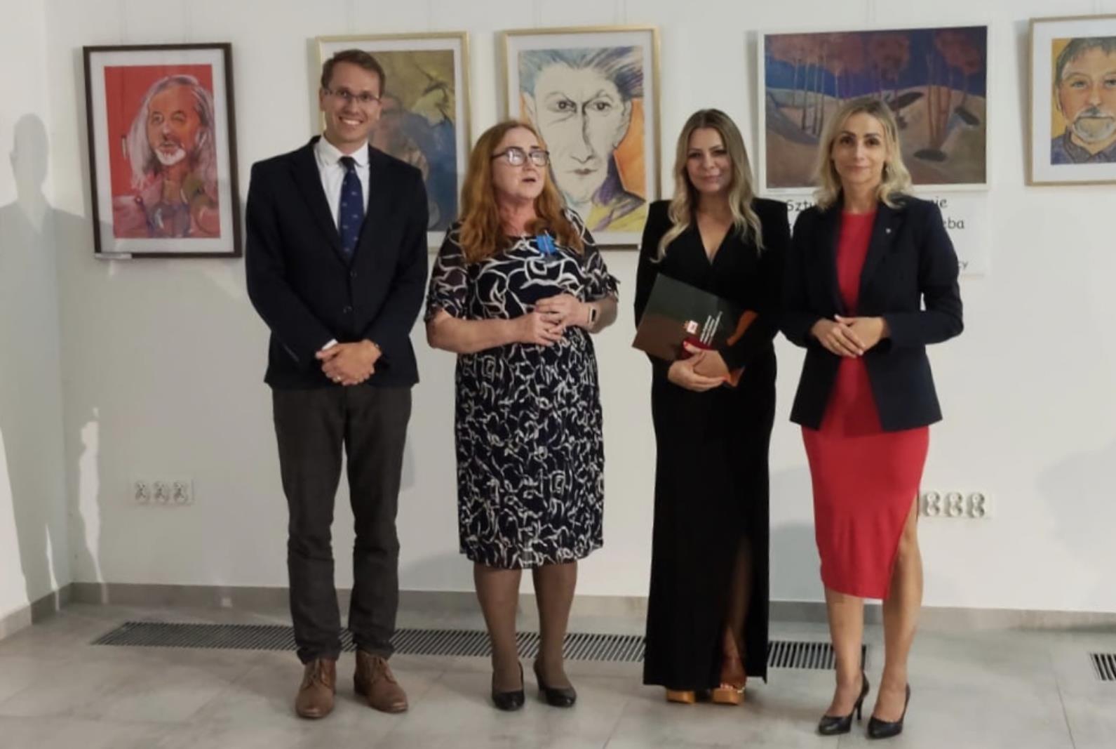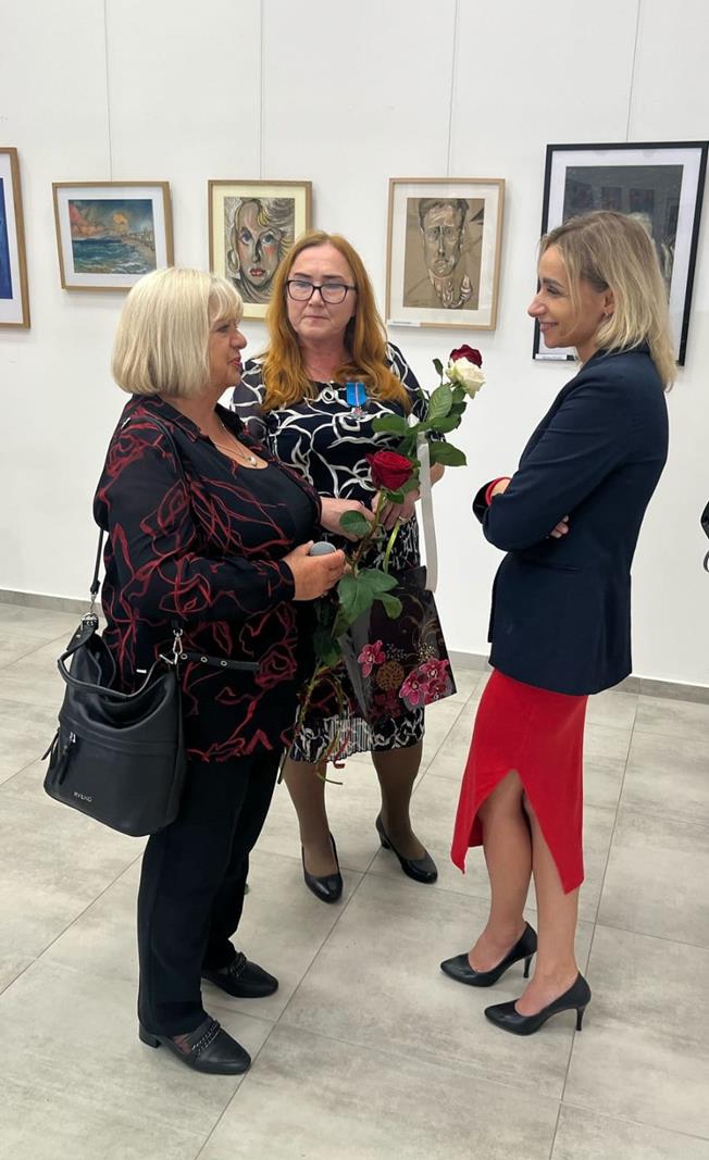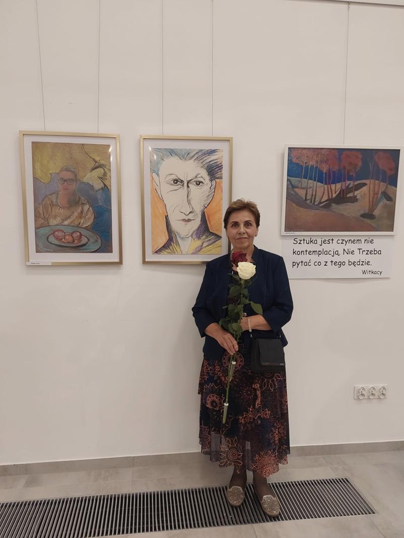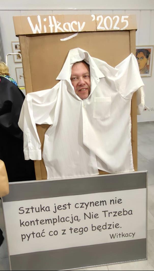 Nie zabrakło gości, którzy skorzystali z naszego zaproszenia i licznie przyszli na przygotowane przez nas wydarzenie kulturalne. Wśród nich swoją obecnością zaszczycili nas m.in.: pani Marta Magda z Urzędu Marszałkowskiego Województwa Wielkopolskiego, pan Krzysztof Jaworski Burmistrz Trzcianki, pani Joanna Harbuzińska Turek – prezes Delegatury Wielkopolskiej Izby Lekarskiej i pani Dominika Jeske Dyrektor Biblioteki Publicznej i Centrum Kultury w Trzciance oraz grono przyjaciół. Otwarcie wystawy można uważać za udane, wszyscy byli poruszeni przedstawieniem spektaklu oraz pod wrażeniem przygotowanych prac wzorujących się na twórczości Witkacego. A na wystawę swoje prace przygotowali: Aleksandra Abramczyk, Regina Ankiewicz, Bogumiła Bumbul, Wanda Dylla, Ewa Jabłońska, Grzegorz Koźmiński, Barbara Laskowska, Sławomira Lewińska, Bogusława Różańska i Lidia Wszołek. Oprócz kontemplacji wystawy przy kawie czy herbatce, można było raczyć się ciastem przygotowanym przez nasze panie z JELO a także zrobić sobie zdjęcie przeistaczając się w mistrza Witkacego. Miłym akcentem tego wieczoru było odznaczenie naszej prezeski Bogusławy Różańskiej Odznaką Honorową Za zasługi Dla Województwa Wielkopolskiego. Serdecznie gratulujemy!