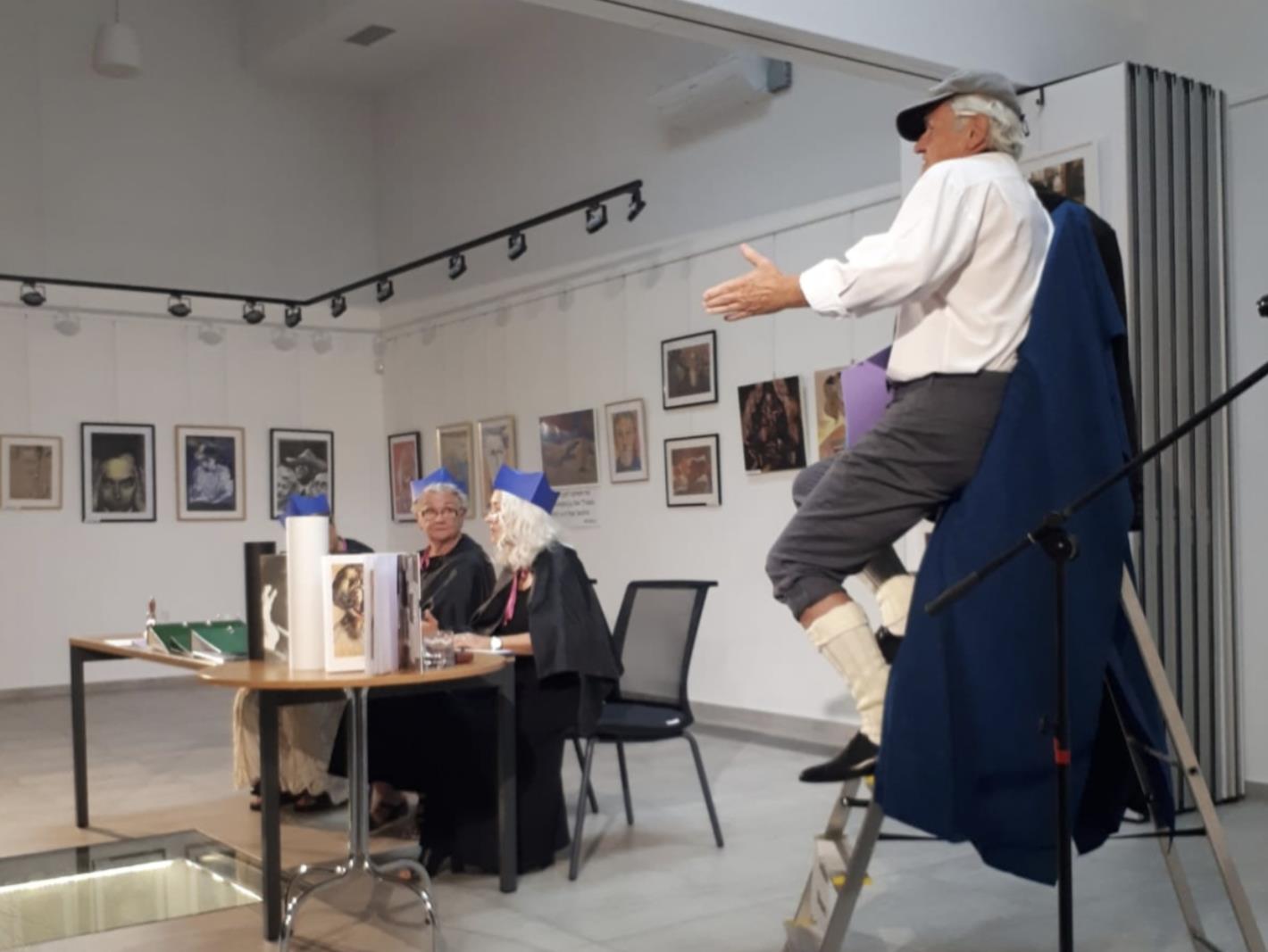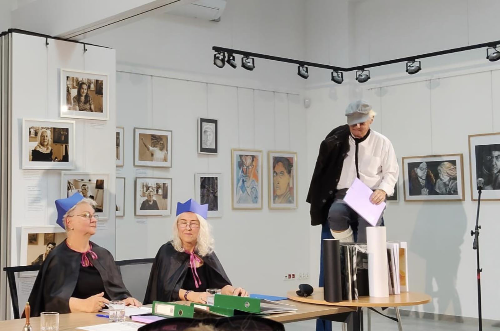 11 lipca o godz.. 17:00 w Instytucie Integracji Społecznej w Trzciance odbył się wernisaż polenerowych prac plastycznych Stowarzyszenia Lekarzy i Nauczycieli Twórczych JELO w Pile pt. „Witkacy –geniusz czy błazen?”, którego ważną częścią był spektakl parateatralny w formie sądu nad artystą. Autorką scenariusza wyżej wymienionego spektaklu jest Barbara Mikołajczak, która przyjęła rolę Obrońcy. Bohaterem był Stanisław Ignacy Witkiewicz, w którego wcielił się się nasz charyzmatyczny kolega – Grzegorz Koźmiński, a kolejnymi postaciami były inne nasze koleżanki-Bogumiła Bumbul, jako Prokurator i Aleksandra Abramczyk , jako Pracownik Sądowy, a wyrok należał do publiczności czyli Sądu Głównego.